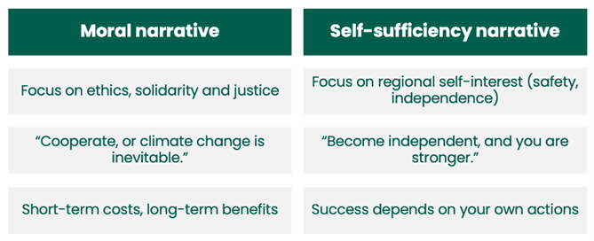 To break through this paralysis, we need a new perspective that links climate action to regional self-interest. Climate solutions often also serve as levers for self-sufficiency and strategic autonomy. From that viewpoint, a self-sufficiency narrative is gaining importance. By connecting climate action to tangible benefits, such as strengthening Europe’s energy and raw materials security—collaboration becomes not only morally motivated but also rationally attractive.