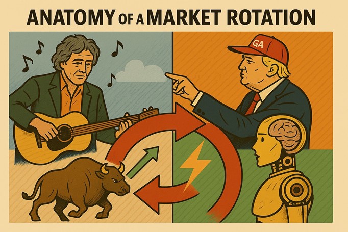 The current volatility reinforces the importance of diversification — across geographies, sectors, themes, and asset classes — something we at Econopolis have always emphasised. Moreover, today’s market favours active management and stock picking over passive index-tracking. The ongoing rotation illustrates that while excessive trading rarely leads to good outcomes, inactivity can be just as costly. A rigid commitment to a single trend or sector typically results in underwhelming long-term returns, as the global landscape constantly shifts, with industries and companies rising and falling.