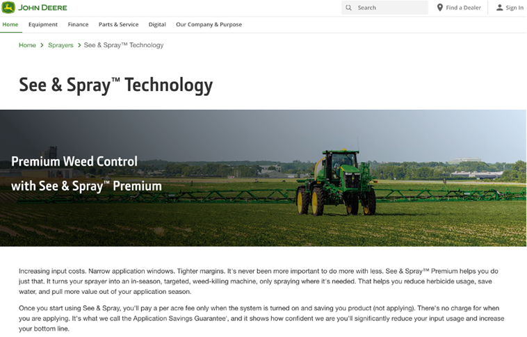Among industry incumbents, John Deere is probably best known for advanced technology. The company is developing autonomous tractors, leveraging AI with satellite imagery to monitor crops more effectively, assess field conditions, and optimize resource allocation. It’s proprietary ‘See & Spray’ computer vision is designed to differentiate between crops and weeds, allowing for herbicide application only on targeted weeds rather than the entire field.