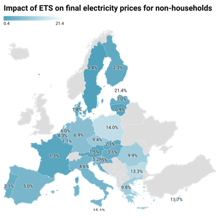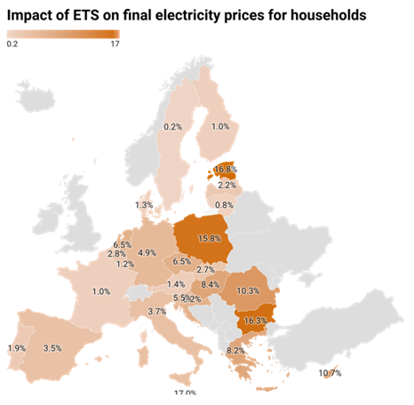 Impact of ETS on final power prices in EU ranges from 0,2% to 21,4%